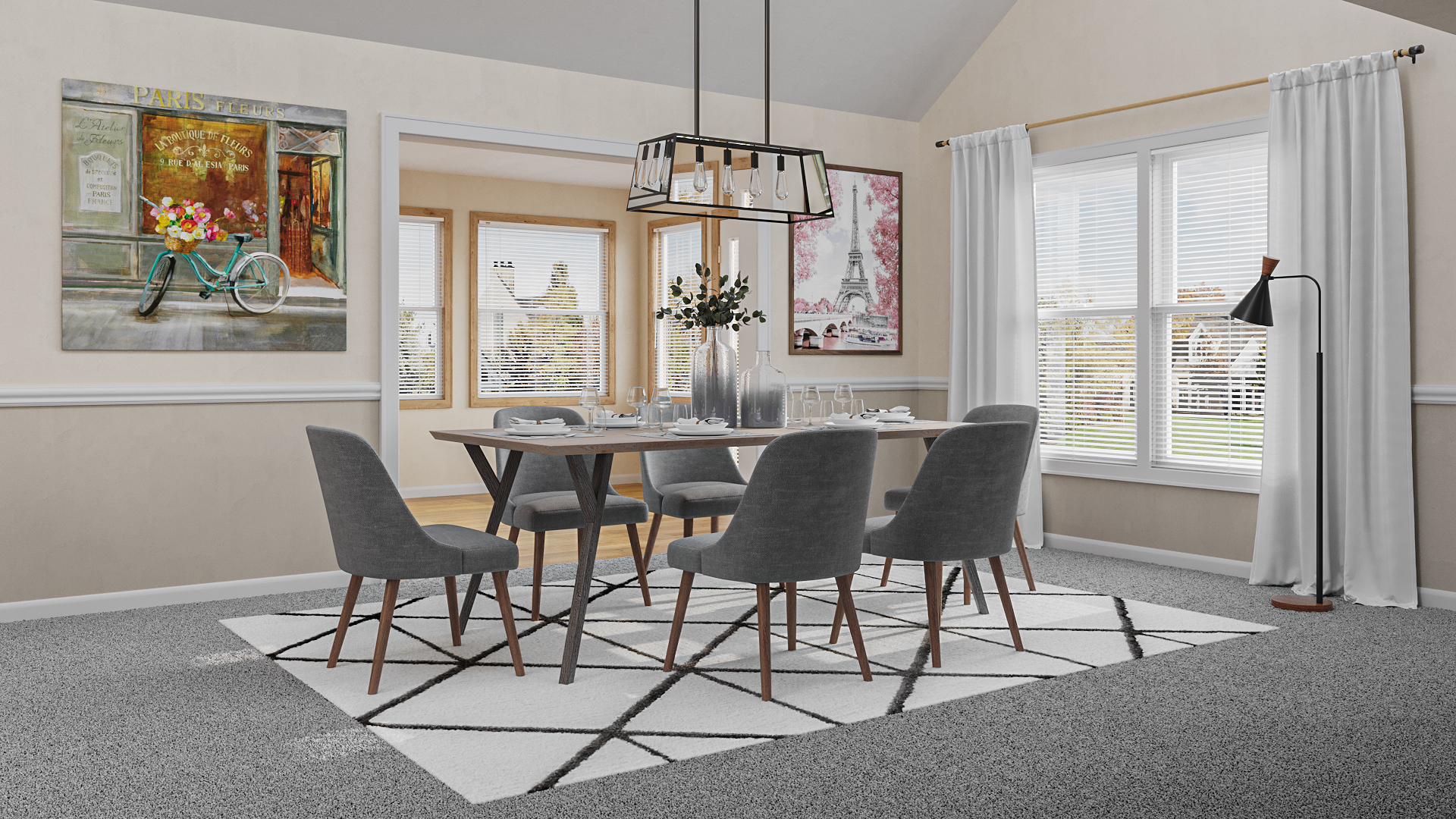 Another approach towards bringing darker accents to the design palette would be by opting for black feature lights. Let these bold hanging lights shine over the neutral dining space and add an artistic edge to the design.